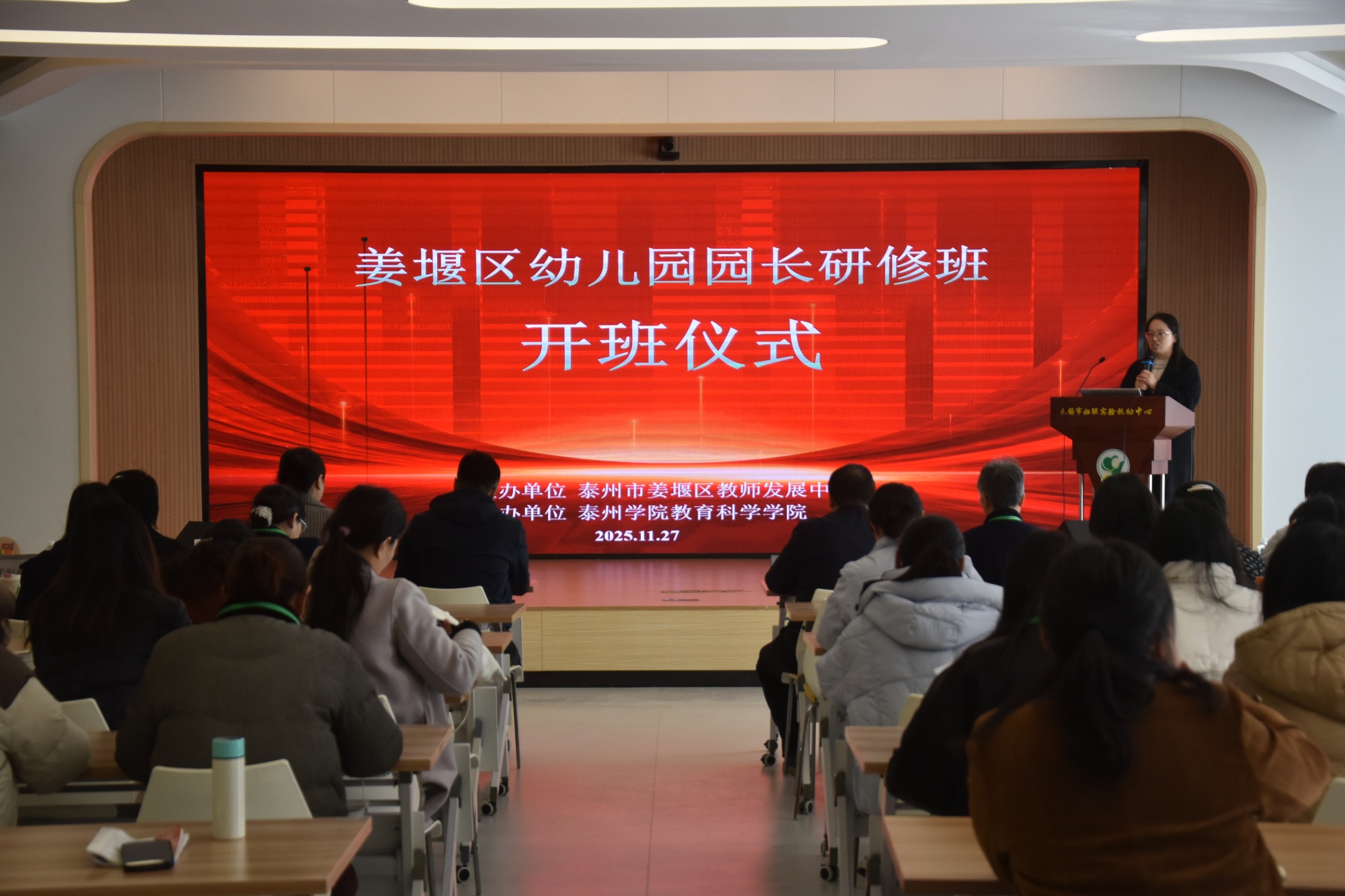 为提升泰州市姜堰区幼儿园园长课程建设领导力,促进姜堰区学前教育高质量发展,由姜堰区教师发展中心主办、bat365在线中国官网登录入口教育科学学院承办的2025年幼儿园园长研修活动,于11月27日至28日在无锡市妇联实验托幼中心、无锡市滨湖区胡埭中心幼儿园和无锡市立人幼儿园顺利开展。来自姜堰区各公办、民办幼儿园的40余名园长齐聚一堂,开启为期两天的集中研修、充电学习之旅。