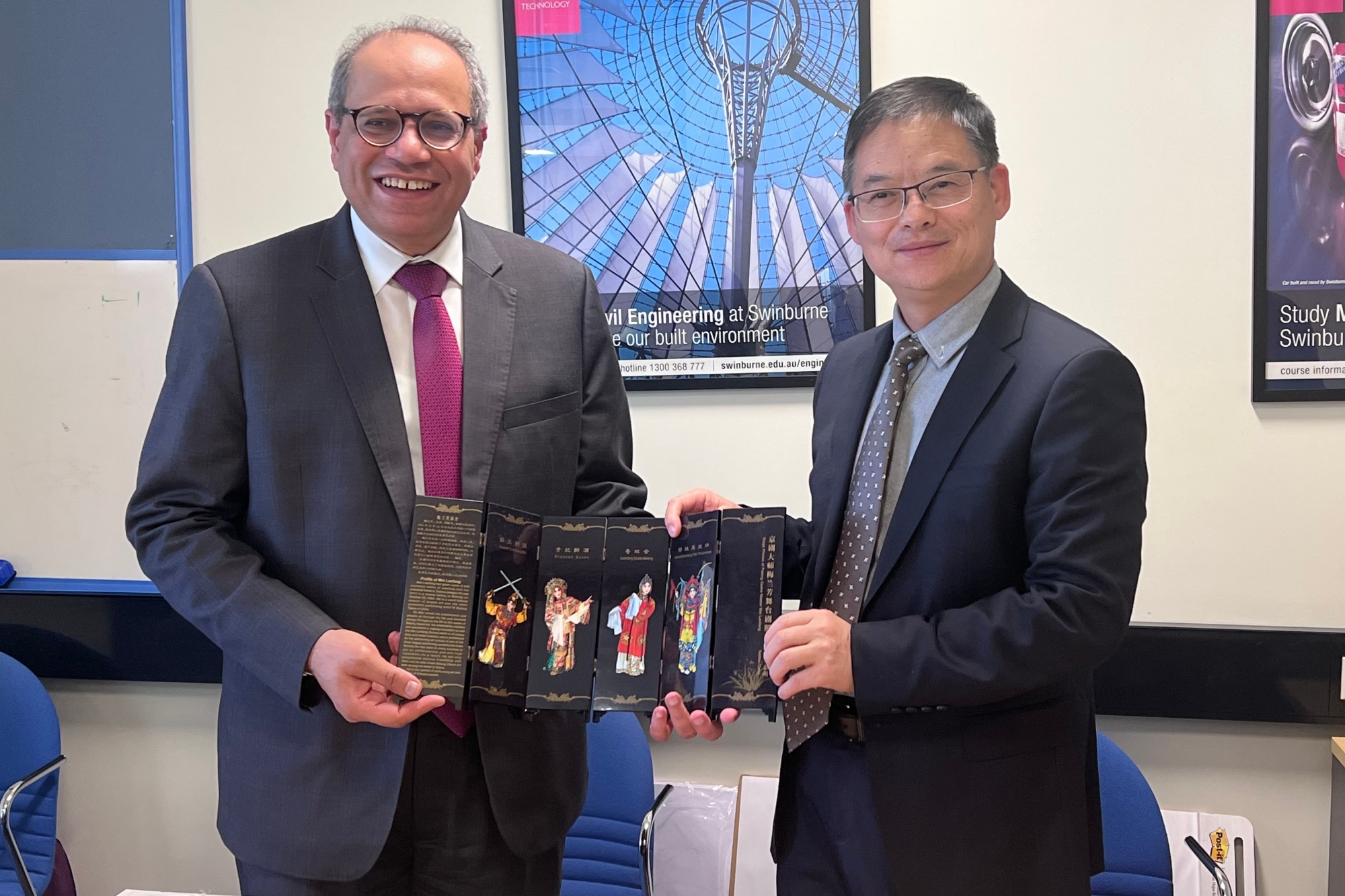 在澳大利亚期间,麦考瑞大学校领导及相关人员接待了冯锋一行。冯锋肯定了两校近年来开展的交流和课程共建项目,双方围绕本硕联合培养和合作办学的可行性与实施路径进行了研讨,就课程对接、师资交流、学分互认等方面交换了意见,达成进一步合作意向,并对依托信息技术深度合作提出方案。在斯威本大学访问期间,双方研讨了工程类专业的合作模式,就工程类专业工学交替教学模式和产学研结合实践模式进行了交流,并考察了工程技术和未来工厂实验室,达成专业合作共建意向。