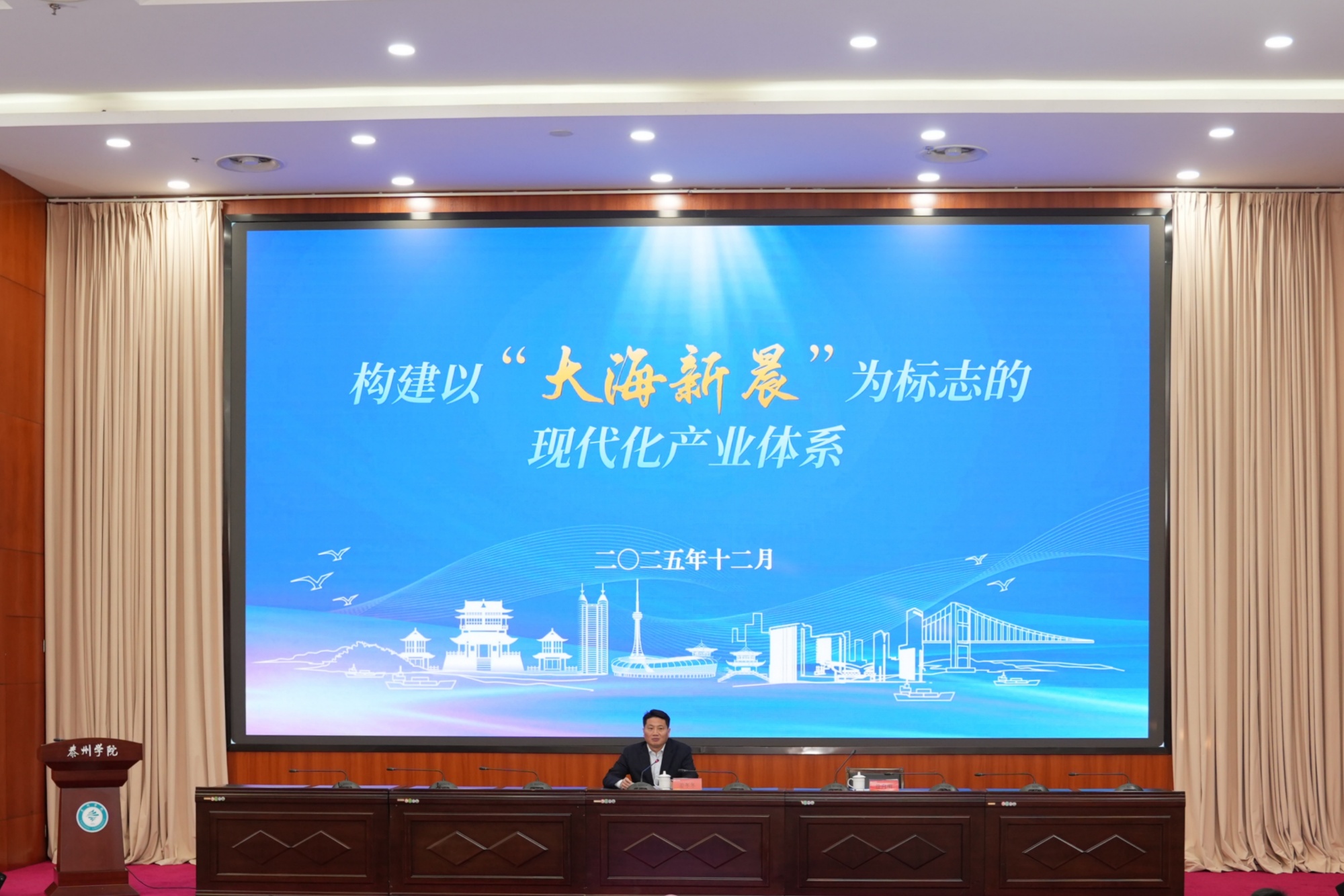 12月19日,市委书记姜冬冬到bat365讲授思政课,宣讲党的二十届四中全会精神,以《构建以“大海新晨”为标志的现代化产业体系》为题,与师生们深入交流,希望大家牢记习近平总书记殷殷嘱托,听党话、跟党走,坚定理想信念,厚植家国情怀,把人生追求融入中国式现代化伟大事业,为实现强国复兴伟业矢志奋斗。