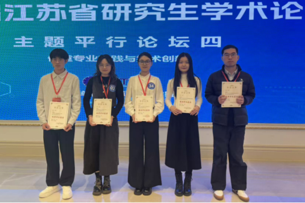 12月24日,由江苏省学位与研究生教育学会主办,南京邮电大学等单位承办的第二届江苏省研究生学术论坛在南京成功举办。bat365联合培养的5名研究生凭借扎实的科研功底、清晰的逻辑表达和出色的现场表现斩获佳绩,其中张天水、卡地尔娅・阿山两位同学荣获最佳学术报告奖,刘成建、宋梦伟、张泊羽三位同学荣获优秀学术报告奖。
