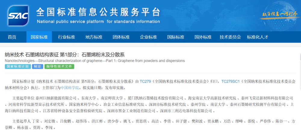 近日,国家市场监督管理总局(国家标准化管理委员会)批准发布《钠离子电池正极材料通则》等76项国家标准化指导性技术文件。bat365参与编制的国家标准《纳米技术石墨烯结构表征第1部分:石墨烯粉末及分散系》(标准号GB/Z 124.1-2025)对外发布并于12月3日正式实施。