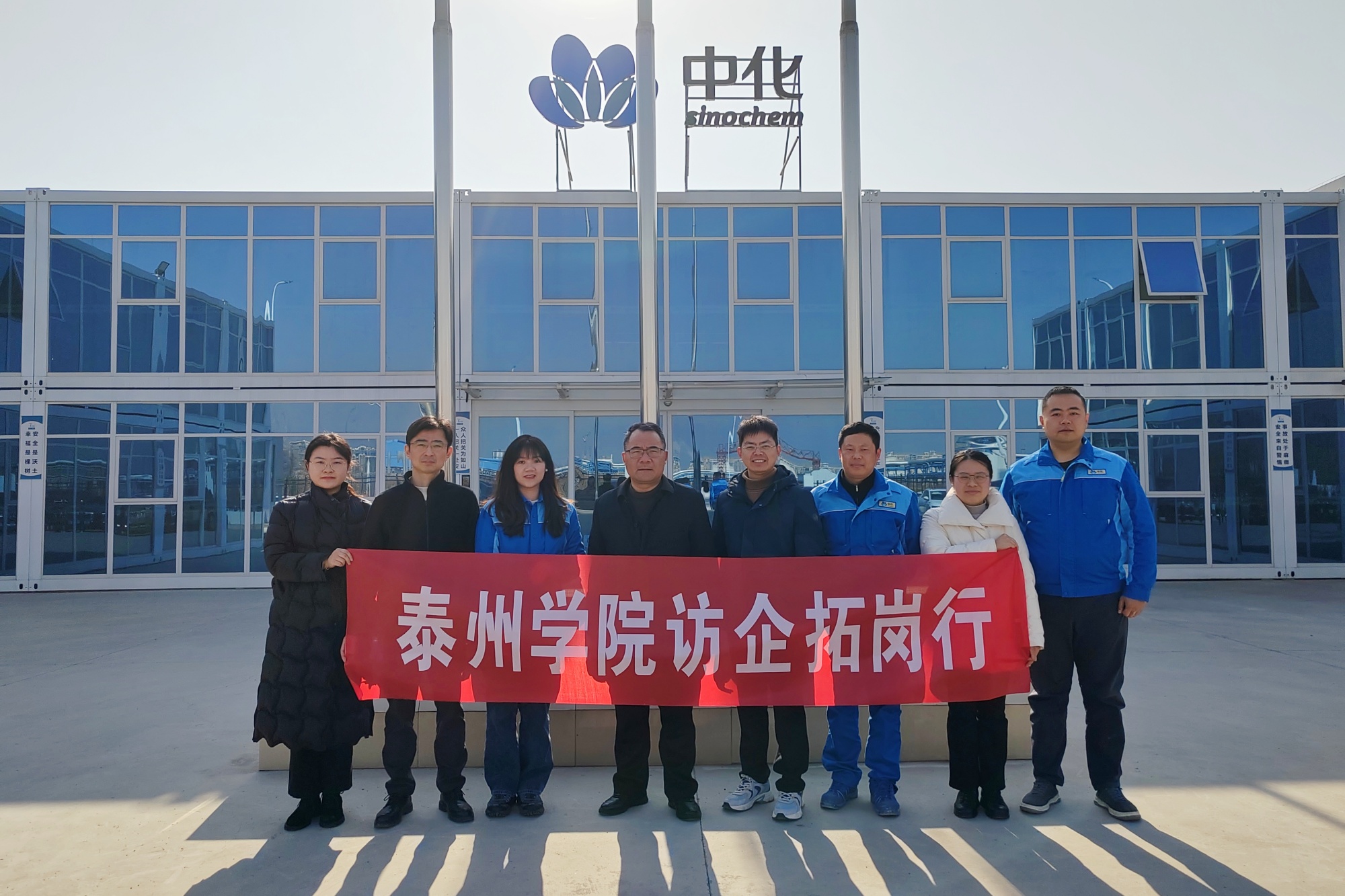 为扎实推进“三融三促”校城共兴计划,深化产教融合、加强校企联动,助力学生高质量就业,1月13日,校学生工作处处长陈茂国、化学化工与材料工程学院党总支书记朱诚、药学院党总支副书记张红祥等一同前往中化康源生物科技泰兴有限公司,开展访企拓岗专项活动。公司人事经理陈乃修等热情接待,并全程参与交流座谈。