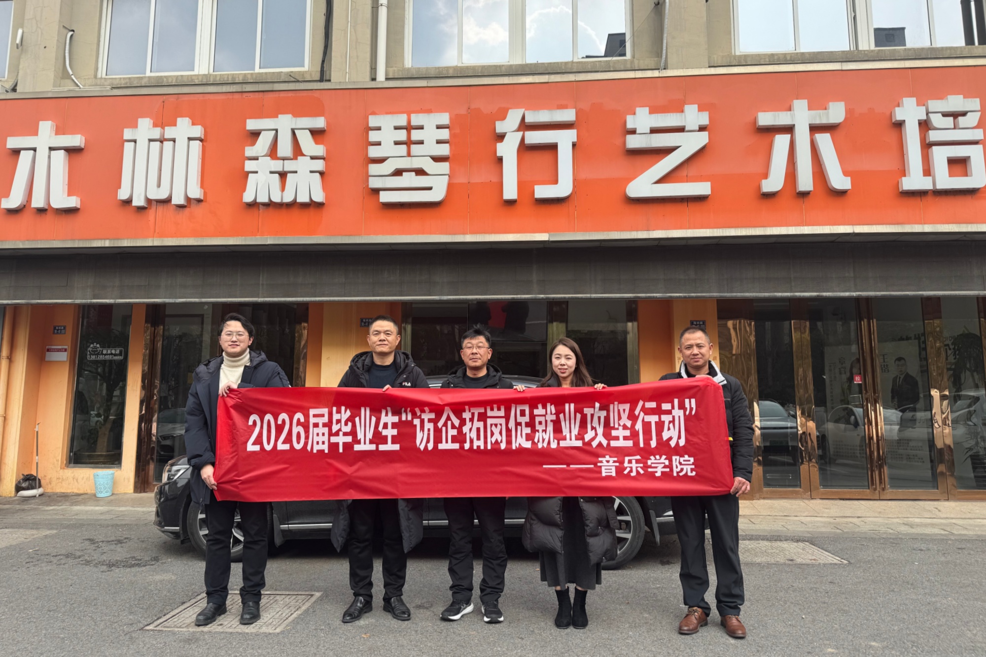 寒假是毕业生求职黄金窗口期,为落实高校毕业生就业工作部署,护航学子求职路,1月28日,音乐学院党总支副书记、副院长黄震,副院长蒋进一行赴张家港木林森琴行实地走访调研,开展“访企拓岗”专项行动。