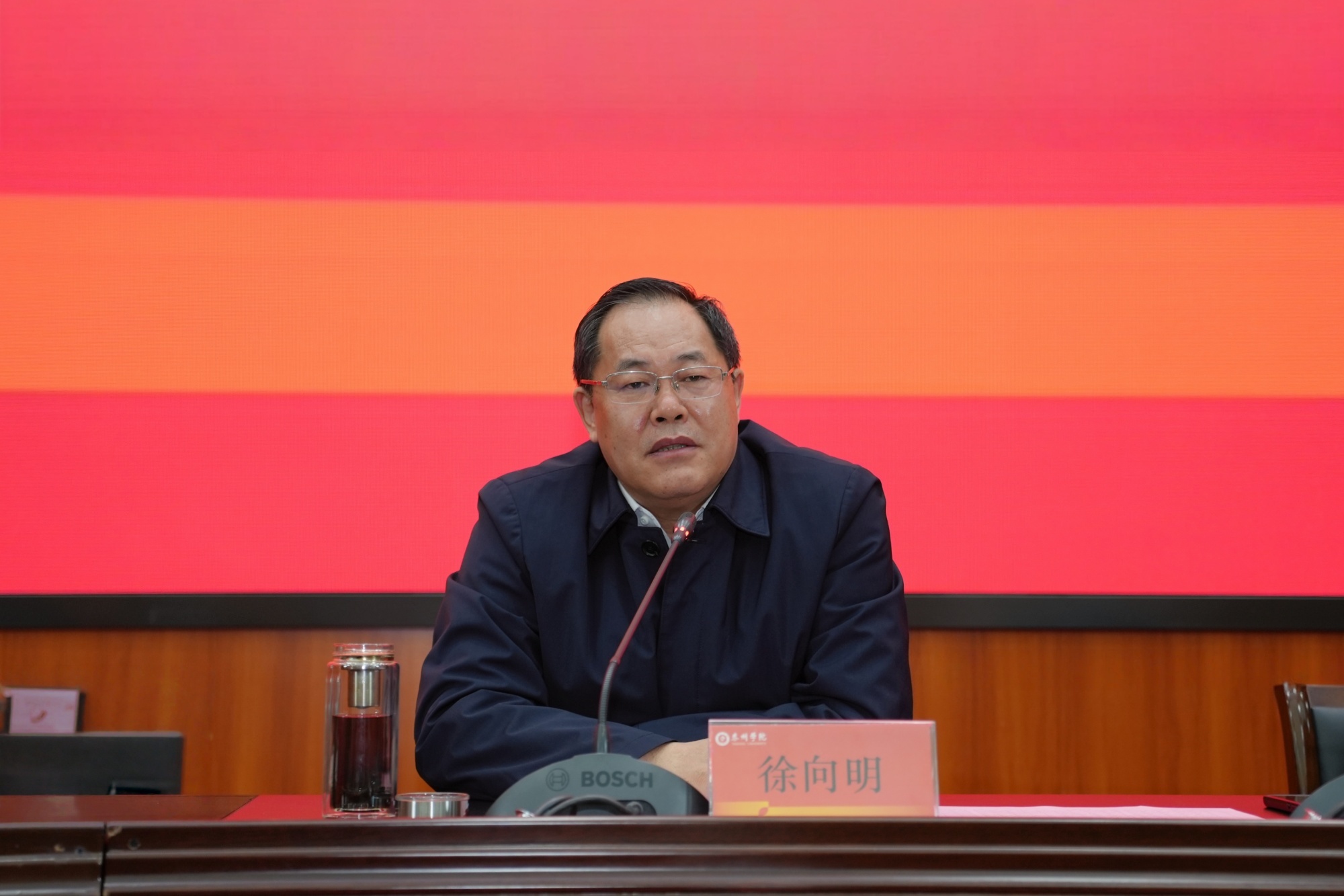 徐向明以《坚定团结勇担当 实干笃行开新局 走好新时代学校高质量发展长征路》为题作开学动员。他指出,2026年是红军长征胜利90周年,我们要传承发扬伟大长征精神,积极破解发展难题,攻克改革难关,奋力推动学校事业高质量发展。他重点强调了四个方面:一是要坚定理想信念,扎根地方沃土。坚持党建引领,强化理论武装,锚定应用型办学定位,在服务经济社会发展中彰显担当作为。二是要坚持实干为先,深耕主责主业。广大教师要在教学改革、科研创新、育人实践、社会服务中主动作为;管理人员要提升能力本领、强化责任落实,以务实作风推动各项任务落地见效。三是要勇担急难险重,强化协同攻坚。围绕省高质量考核争先进位、硕士点申建攻坚等重点任务,打破壁垒、整合资源、协同发力,在破解瓶颈、突破短板中开创新局。四是要坚持群众路线,严守纪律规矩。厚植为民情怀,树牢正确政绩观,强化党建责任和作风建设,以风清气正的政治生态保障事业行稳致远。他要求,全校上下要以“驽马十驾、功在不舍”的韧劲求突破,以“跃马扬鞭、马不停蹄”的干劲创实绩,走好学校高质量发展的长征路。