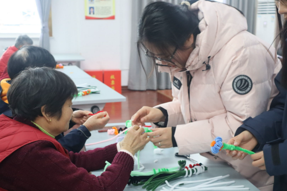 在城中街道税务社区,志愿者们聚焦老年群体,结合红军长征胜利90周年这一重要时间节点,现场传唱经典红色歌曲、用红色文艺传递温暖与力量。同时开展暖心手工互动活动,手把手指导老人制作手工花束,陪着老人唠家常、话温情,用细致入微的服务,为老年群体送去关怀与慰藉,让雷锋精神在贴心服务中落地生根。