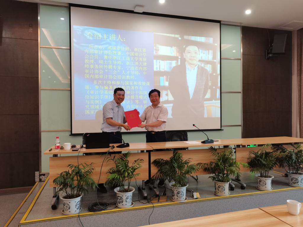 MPAcc实践导师进《审计理论与实务》课堂 6月2日,教育中心邀请浙江省内部审计协会理事、高级审计师何志方走进《审计理论与实务》课堂,以“现代内部审计实务创新”为主题,为2019级、2020级全日制MPAcc研究生做了一场精彩讲座。何志方老师从审计的基本矛盾开始,指出现代审计是以准则为基础,控制为根本的审计,详细阐述了中国审计发展的起源,指出中国审计经历了萌芽-发展-中衰-演进四个时期,财务审计—经营管理审计—制度基础审计——风险导向审计阶段的四个发展过...