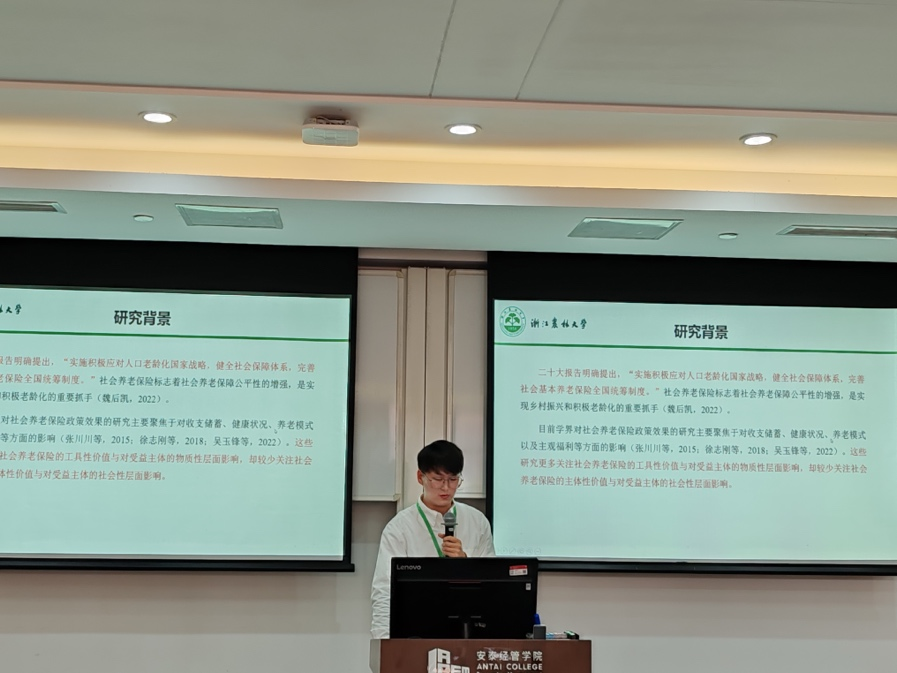 开云开云kaiyun网站2021级农业管理硕士研究生吕良瑞和2023级农业经济管理硕士研究生许江帆分别就《社会养老保险对农村老年人社会适应的影响—基于中国老年社会追踪调查的实证研究》和《粮食安全背景下农业化学投入品减量的生态补偿标准研究—基于作物差异的分析》在“分论坛五:老龄化、教育与健康”和“分论坛四:绿色与低碳”分会场中进行主题演讲,其中许江帆同学担任分论坛下半场主持。本次论坛由院长助理杨建辉副教授带队,并在 “分论坛二:数字经济”分会场中担任点评专家。参加本次论坛,展现了开云的研究生研究水平,拓宽了研究生的学术视野,助推了研究生科研能力的培养,也加强了与兄弟院校研究生之间的沟通交流。