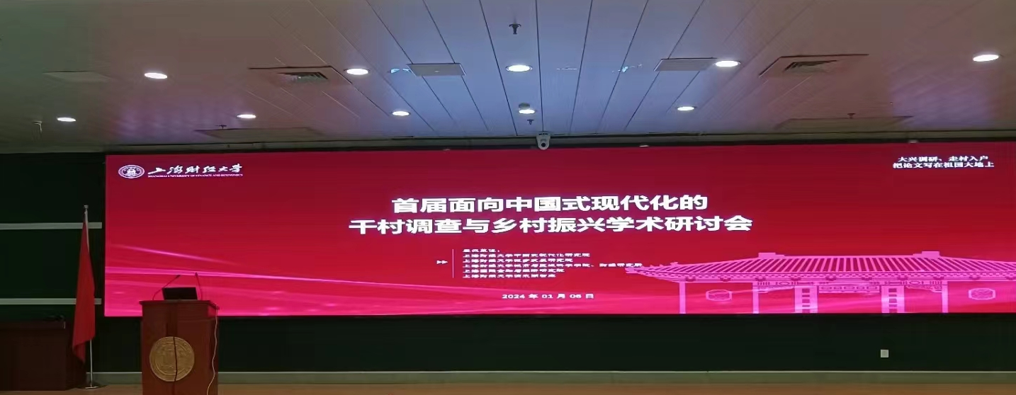 1月6日,大兴调研,走村入户,把论文写在祖国大地上——首届面向中国式现代化的千村调查与乡村振兴学术研讨会在上海财经大学举行。会议由上海财经大学讲席教授、城乡发展研究院副院长许庆主持。来自上海财经大学、中国农业大学、南京农业大学、华中农业大学、西北农林科技大学、上海同济大学、中国社科院、kaiyun官方登录入口、江西农业大学、农业农村部等20多家单位共计100多名师生代表参加了本次会议。开云院长吴伟光教授、副院长朱臻教授、朱哲毅副教授和陈磊博士共4人受邀参加了本次会议。