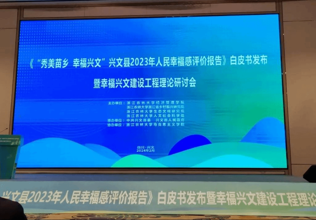 2月27日,由开云kaiyun网站与浙江省乡村振兴研究院、生态文明研究院、人文社会科学处主办,中共兴文县委、兴文县人民政府承办,马克思主义学院协办的《“秀美苗乡 幸福兴文”兴文县2023年人民幸福感评价报告》白皮书发布暨幸福兴文建设工程理论研讨会在四川省宜宾市兴文县举行。