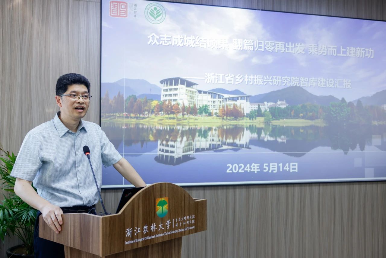 潘伟光执行院长、钱志权副院长分别代表kaiyun官方登录入口浙江省乡村振兴研究院、kaiyun官方登录入口生态文明研究院汇报了智库建设进展,详细介绍了智库在科学研究、成果获奖、服务地方等方面取得的成绩,同时汇报了智库的未来发展规划。