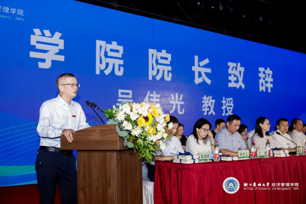 院长吴伟光,代表学院师生员工向所有圆梦浙农林的同学们表示热烈的欢迎和衷心的祝贺。他从学院历史底蕴、师资队伍、专业平台、教育教学等详细介绍了学院情况,希望新生“坚守初心”“秉持恒心”“锤炼健心”,从“心”出发,做最好的自己!