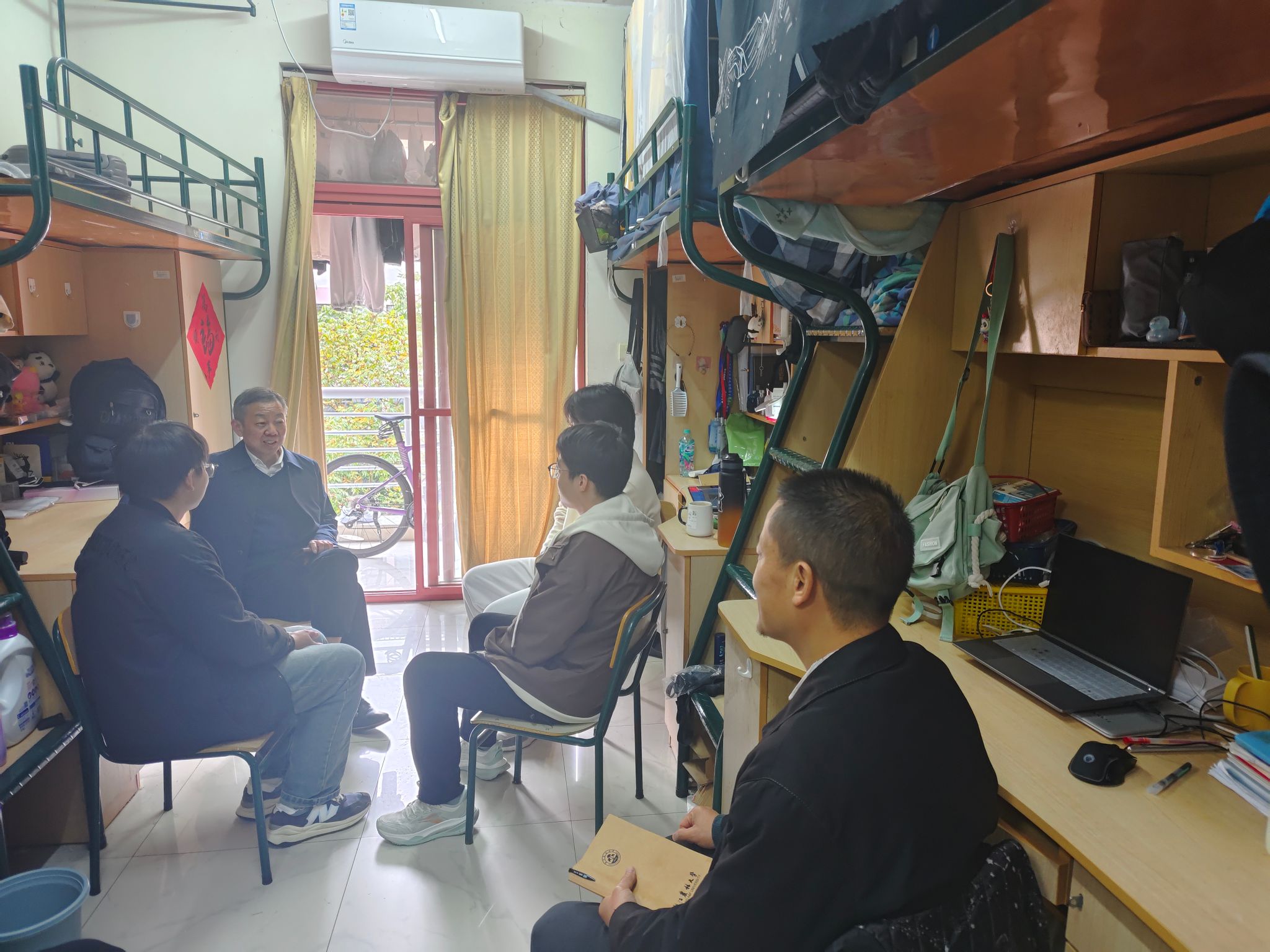 11月18日,副校长吴家胜在开云网站相关负责人、辅导员的陪同下,到B8学生公寓走访研究生寝室。