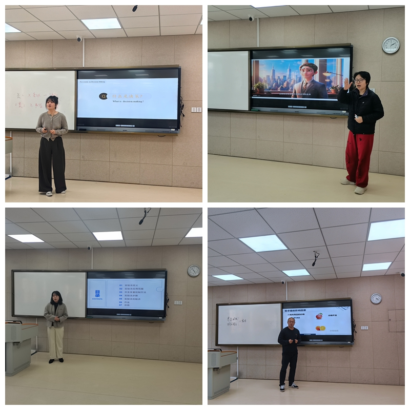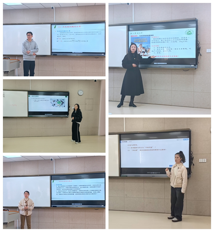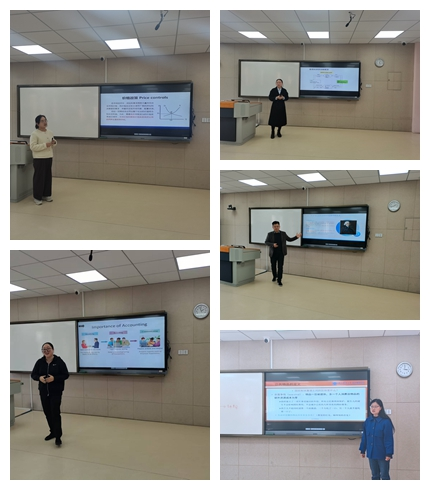 比赛现场亮点纷呈,鲁晓玮老师通过案例,结合 “认知偏差”模型,以明亮的语言生动地分析了决策者的心理机制。张旭尧老师充分运用AI技术,逻辑严谨、深入浅出讲授了非同一控制下企业合并的会计处理,展现了会计学科的专业性与应用性。王琰老师以市场调研方法中的“实验法”为核心内容,结合学生在毕业论文中的实际运用,详细的讲解了这一方法的定义和运用,充分体现了理论+实践的教学理念。宁老师从当前“消费升级与经济增长”的热点问题切入,系统讲解了总需求曲线的构成及其影响因素。课程以“问题链”串联知识点,注重理论联系实际,激发了学生的深度思考与课堂参与热情。祝文婕老师以流畅的英语生动活泼的讲授了“Accounting in Business”,呈现了高质量的国际化课堂。每位教师从教学内容、教学组织、语言教态以及教学特色等方面都做了精心准备。比赛中,青年教师们精神饱满,教学目标明确,教学演示丰富,讲述逻辑严谨清晰,充分运用案例教学、AI技术、雨课堂等现代教育技术手段,进行了很好的教学呈现。得到了评委的充分一致好评