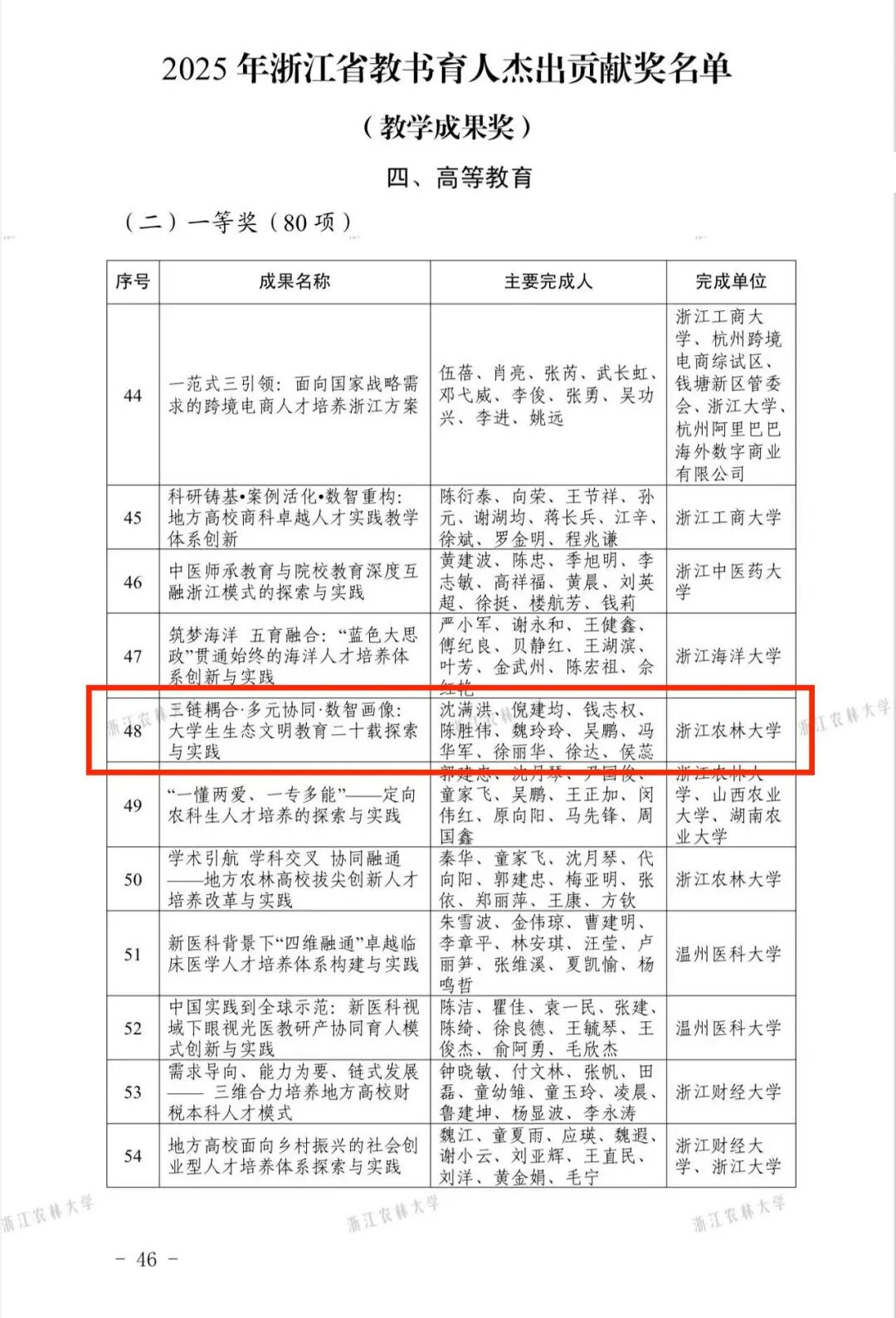 9月3日,浙江省人民政府办公厅公布2025年浙江省教书育人杰出贡献奖名单。
