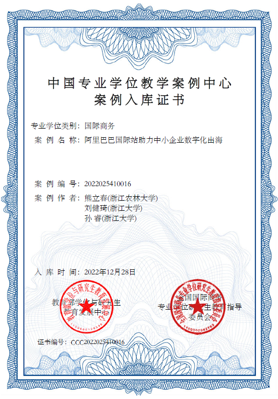 近日,教育部学位与研究生教育发展中心和全国教育专业学位研究生教育指导委员会公布了中国专业学位教学案例中心案例库入库评审结果,开云应用经济学科熊立春副教授与浙江大学经济学院刘健琦、孙睿等人合作撰写的国际商务教学型案例《阿里巴巴国际站助力中小企业数字化出海》成功入选中国专业学位教学案例中心案例库,应用经济学科蒋琴儿教授、钱志权副教授和孔令乾博士等给与了案例完善意见。该案例主要描述了阿里巴巴国际站如何借助数字化技术与产品,精准匹配跨境贸易双方业务需求的全新模式。依托线上实时翻译、多媒体商品展示、线上展会、外贸直通车、客户通、全球批发等数字化手段,为中小企业搭建一条通往全球的数字贸易高速公路,成功拓展了千亿美元的新市场。