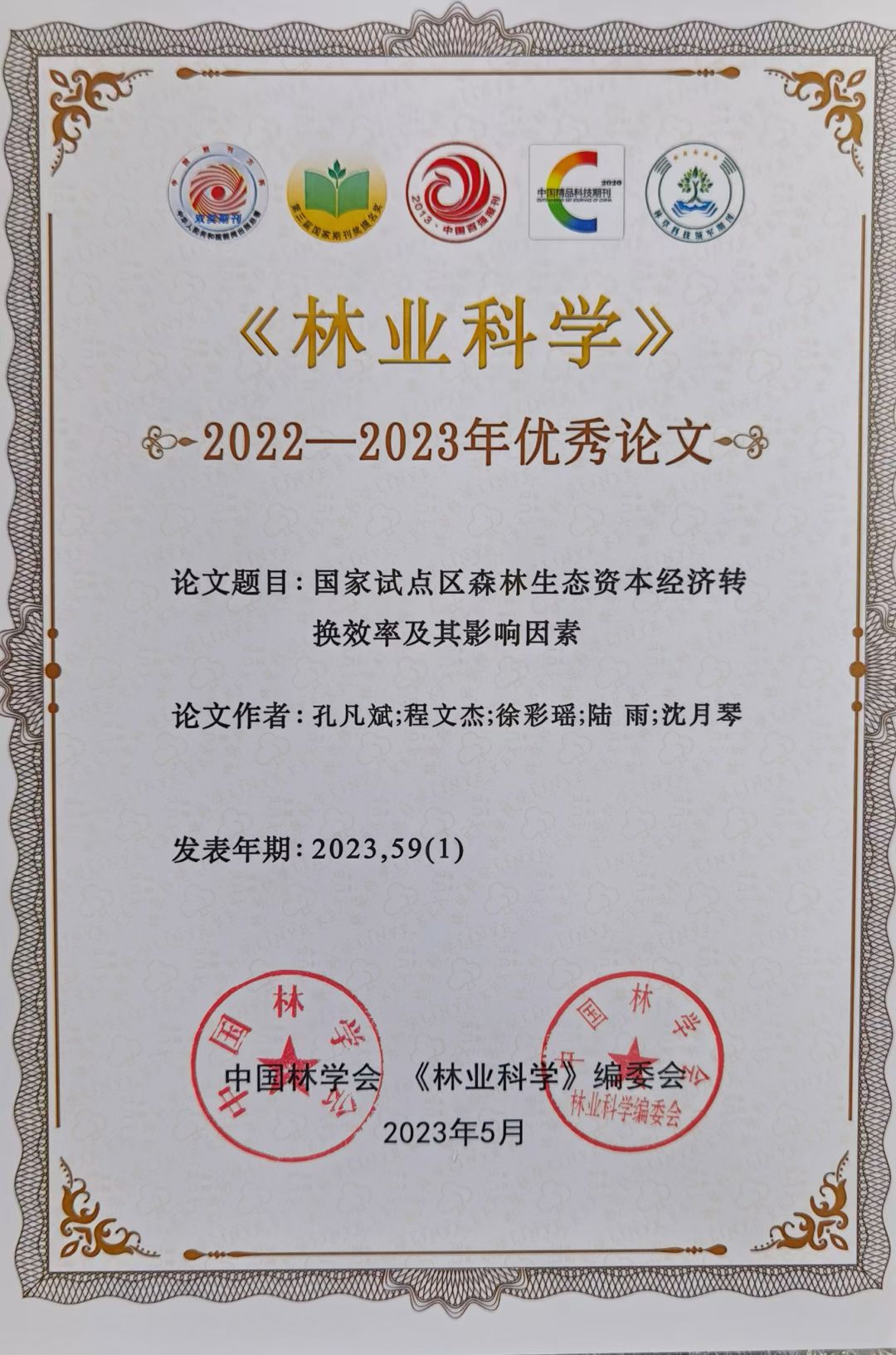 近日,浙江省新型重点专业智库——kaiyun官方登录入口生态文明研究院首席专家、执行院长孔凡斌教授团队合作撰写的研究论文《国家试点区森林生态资本经济转换效率及其影响因素》被中国林学会《林业科学》编委会评为2022-2023年优秀论文。