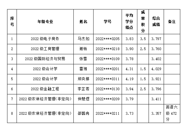 根据《kaiyun官方登录入口关于推荐优秀应届本科毕业生免试攻读研究生工作实施办法(试行)》(浙农林大〔2025〕89号)和《开云kaiyun网站关于推荐优秀应届本科毕业生免试攻读研究生工作实施细则(试行)》(浙农林大经管〔2025〕9号)等文件要求,经学生个人申请,学院推免生遴选工作专家审核小组审核,推免生遴选工作小组复核,党政联席会审定等环节,拟推荐马杰如等8名应届本科毕业生免试攻读2026年相关专业硕士学位研究生。