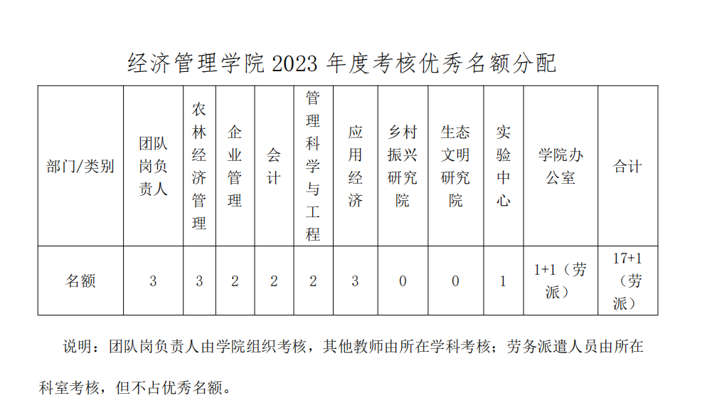 (三)考核优秀等级的人数比例不超过全院教职工人数的15%,优秀等级分配名额见下表。