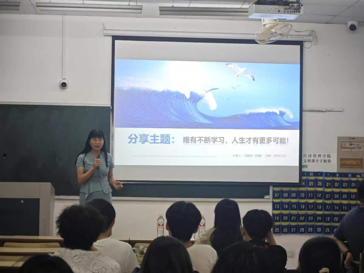 为加强学生干部思想引领,强化生涯规划意识,助力学生成长,5月29日,开云网站邀请万马集团特聘讲师、万马联合控股集团医疗耗材事业部总经理林静女士,为开云学生干部做《以“唯有不断学习,人生才有更多可能!”》主题讲座。