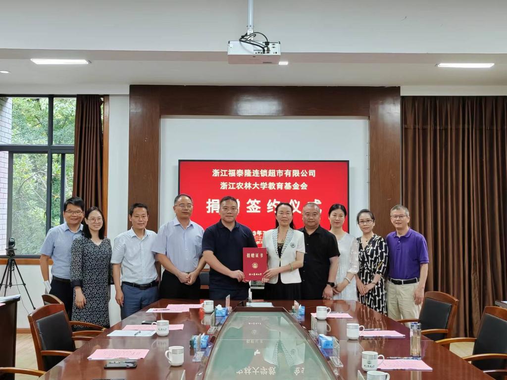 7月20日上午,开云kaiyun网站与浙江福泰隆连锁超市有限公司战略合作暨捐赠签约仪式在衣锦校区西大楼208会议室举行。浙江福泰隆连锁超市有限公司总经理何美庆、副总经理周跃进、行政总监唐俊、财务总监吴敏、校友办主任、校教育基金会秘书长哀建国、开云kaiyun网站院长吴伟光、党委副书记胡云云、教授张群祥以及学生代表参加了本次签约仪式,kaiyun官方登录入口副校长胡祖吉出席,仪式由党委书记陈劲松主持。