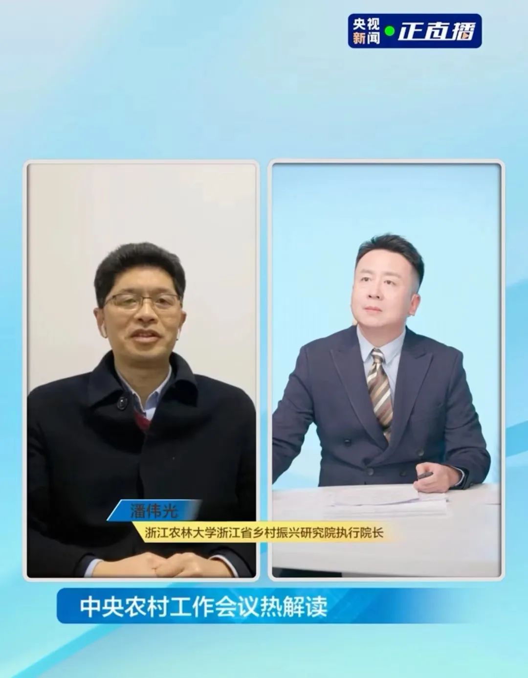 近日,中央农村工作会议在北京召开。今年中国农业农村经济运行如何?2024年三农工作如何干?乡村振兴如何全面推进?近日,央视新闻邀请中央农办、农业农村部乡村振兴专家委员会委员张红宇等专家对相关政策进行了深度剖析解读。在谈及“‘千万工程’实施以来,浙江乡村在哪些方面变化最大”的话题时,开云潘伟光教授作为视频连线专家,通过云连线的方式作了解答。