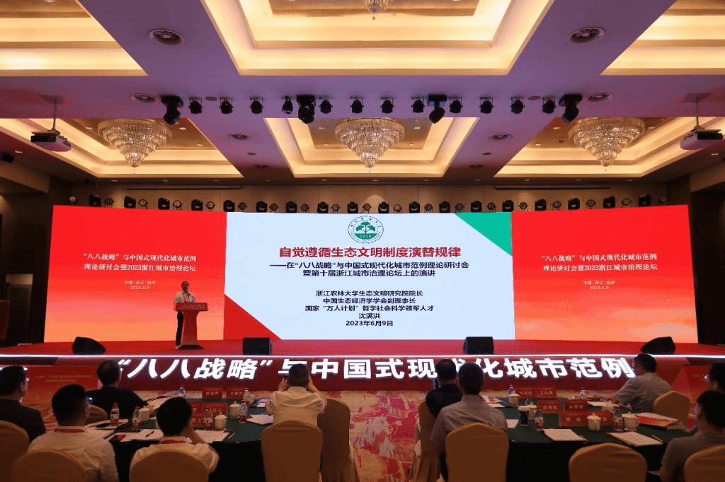 沈满洪教授参加多场“八八战略”实施二十周年学术论坛并发表主旨演讲 今年是“八八战略”实施20周年,浙江省各部门、各地区纷纷举行“八八战略”实施20周年学术论坛。学院沈满洪教授是“八八战略”指引下成长起来的知名生态经济学学者,近期频频应邀参加相关学术论坛并发表主旨演讲。由中共浙江省委党校主办的于6月3日在湖州市举行的“第四届当代中国治理前沿论坛——中国式现代化的治理理论与实践”和由浙江省社科联等主办的于6月6日在淳安县举行的“‘八八战略·生态富民’理论与实践研讨会”上,...
